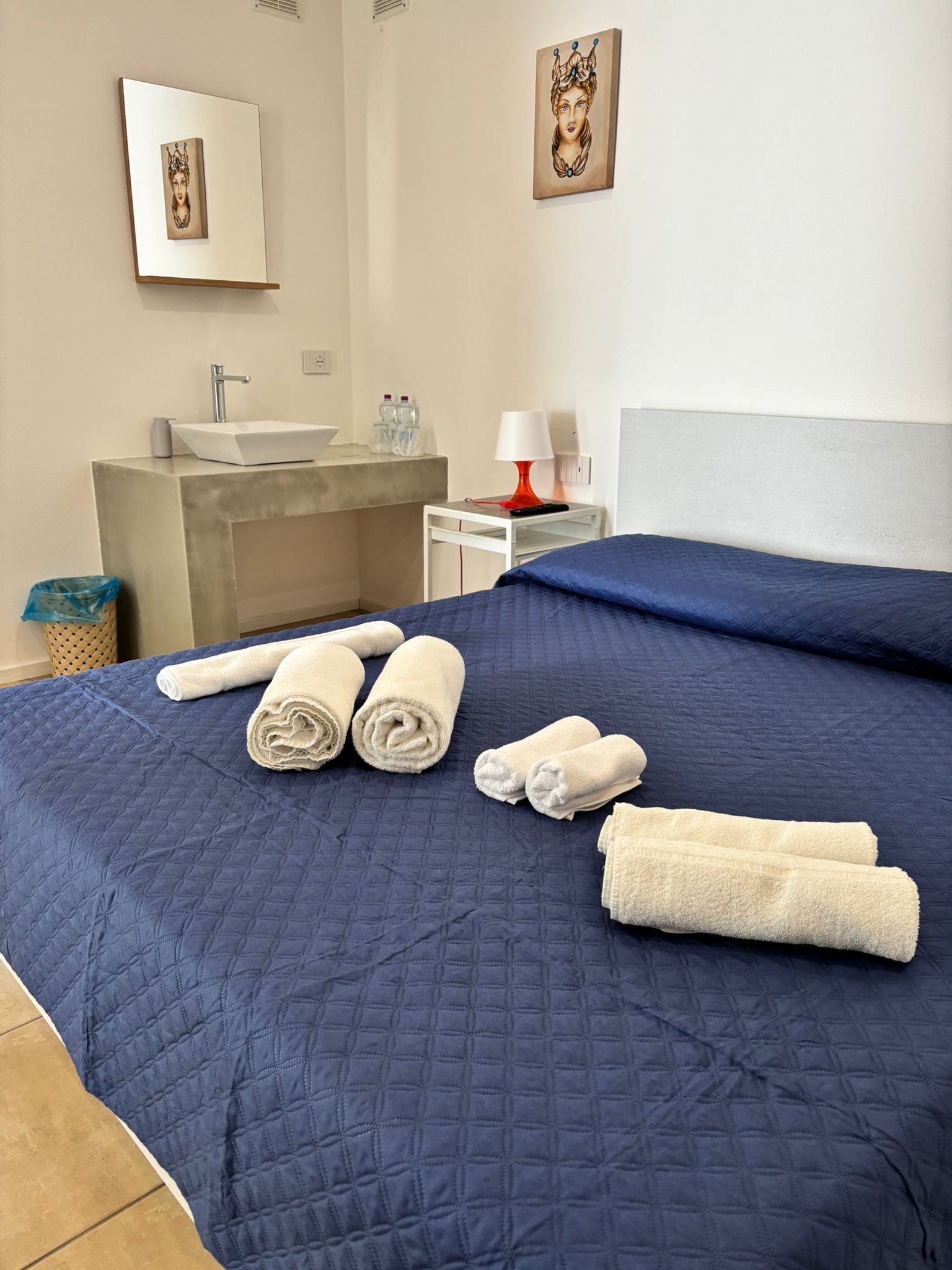 La nostra camera doppia è arredata con cura per richiamare i colori e i materiali della tradizione siciliana. Situata nel cuore pulsante del centro storico, offre un rifugio silenzioso e rigenerante dopo una giornata passata a esplorare i monumenti storici della città.
