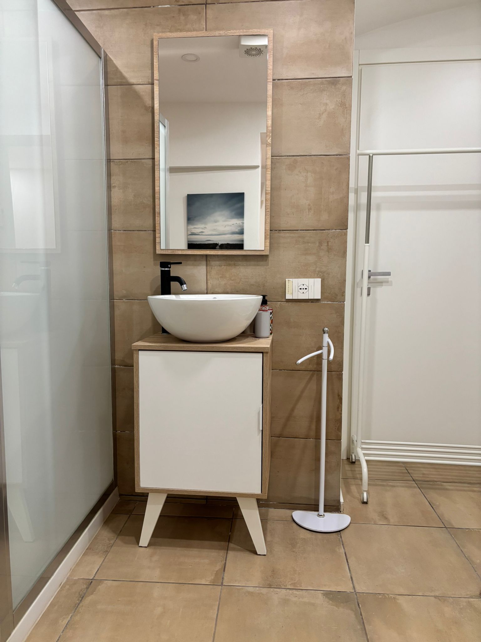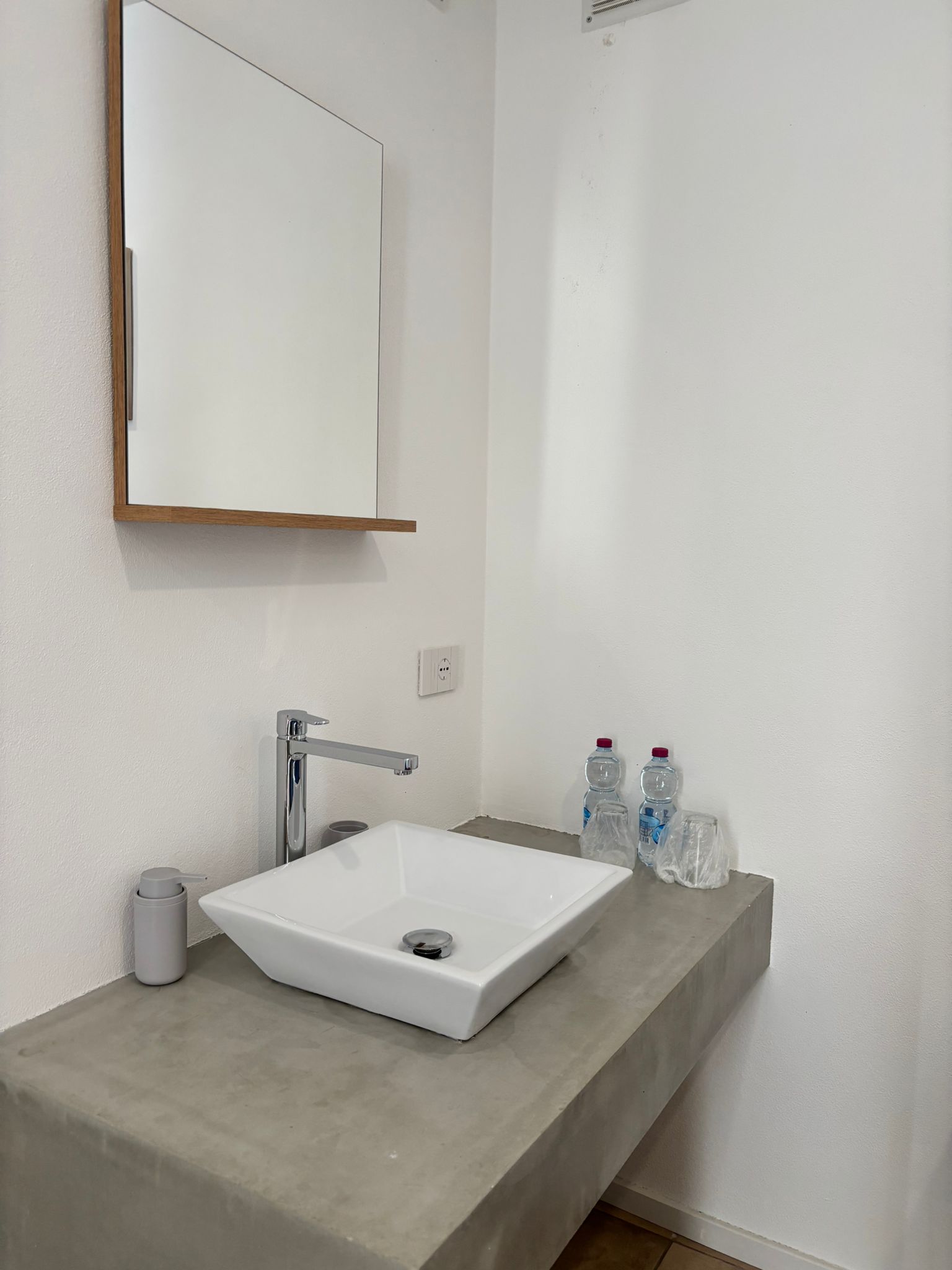 Dotata di un tavolino personale, è possibile farsi ispirare dalle pietre circostanti e dal design della camera per vivere un momento di completo relax.